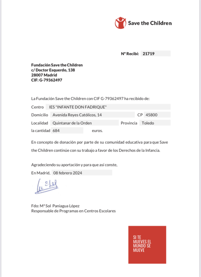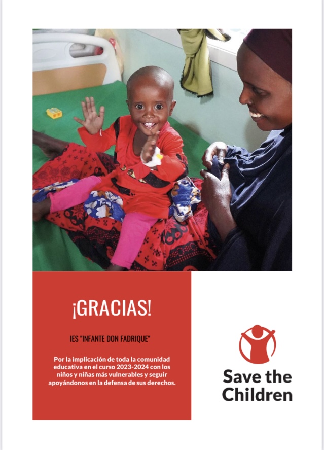 Tapones para una nueva vida: El IES Infante don Fadrique colaboró en el proyecto solidario a nivel nacional “Tapones para una nueva vida” de la Fundación SEUR, cuyo objetivo era ayudar al pequeño Izan, de 3 años, y a su familia a afrontar los gastos de su tratamiento, mediante la recogida de tapones para reciclar.
