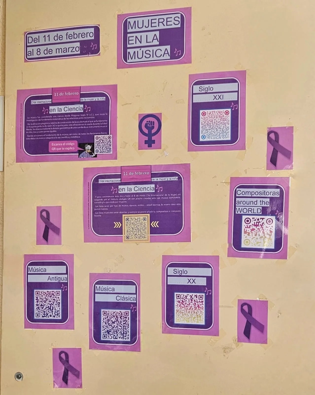 Día Internacional de la Mujer y la Niña en la Ciencia: Para conmemorar el Día Internacional de la Mujer y la Niña en la Ciencia (11 de febrero) las alumnas de la optativa de Investigación y Desarrollo Científico de 2° de bachillerato, y los/as alumnos/as de Cultura Científica de 4°ESO, han elaborado estos dos murales sobre: