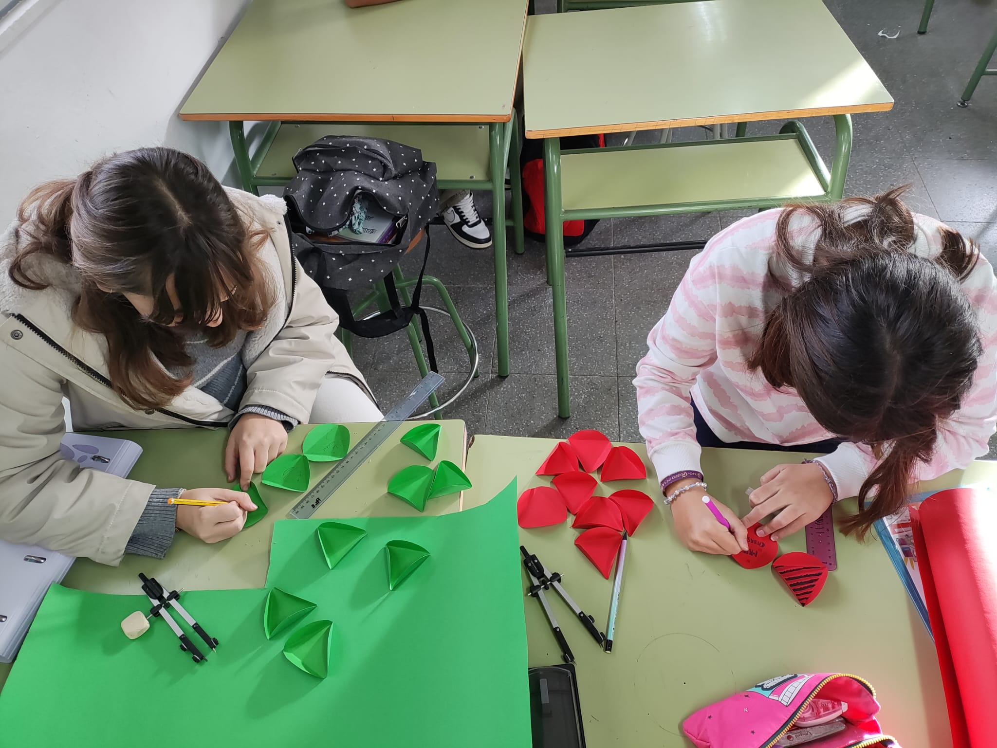 - Arte navideño: en las últimas semanas del trimestre, desde la asignatura de Educación Plástica y Visual, también se trabajó el espíritu navideño. 1º y 2º de la ESO estuvieron fabricando adornos de Navidad mediante octaedros e icosaedros de colores, y los alumnos/as de 3º de la ESO mediante simetrías y contrastes de colores. ¡Feliza Navidad a todos y feliz año nuevo!.