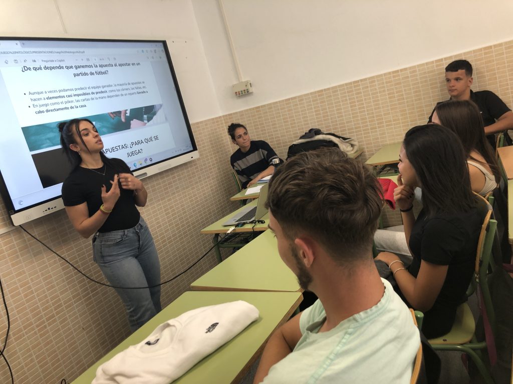 Prevención del juego patológico: el día 24 de noviembre volvimos a contar con la Asociación Punto Omega, en este caso para un taller dirigido al alumnado de 4º de la ESO y con la temática “ Prevención del juego patológico” . Andrés, que fue el profesional que lo impartió, invitó al alumnado a reflexionar sobre la propia adolescencia, las adicciones y el riesgo que suponen los juegos de azar para toda la población y especialmente, para ellos/as. Les invitó a replantearse las posibles actitudes favorables hacia el juego de azar y a que se desarrollen competencias y habilidades personales que actúen como factores de protección frente al desarrollo de un problema de juego patológico, y a que se disminuyan las exposiciones a situaciones de riesgo. Hemos de abrir los ojos a esta realidad, que tal vez sea más preocupante de lo que pensamos.