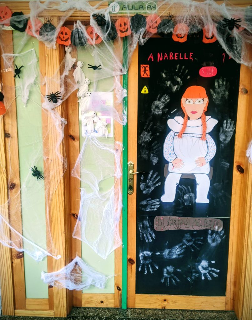 - The most spooky door contest: en el que el alumnado de todos los cursos de la ESO podían decorar las puertas de sus aulas y crear su propio lema terrorífico.